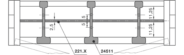 Please note: In addition to the outer width of the chain, there are 31 mm for the width of the two gliding elements!