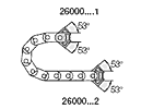 In this version special plastic glide shoes are mounted on the side of the chain link every 1.000 to 2.000 mm. The function of these guide elements resembles the leeboards used on sail boats. Some of these leeboards are conceived in such a way that in contact with firm ground they pivot upward and enable the continuation of the travel. Similarly the glide shoes in AUTOGLIDE go up and down, each according to its position as lower run or upper run of the chain. They provide the precise lateral guidance and a smooth glide of the e-chain®.