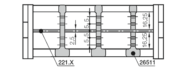 Please note: In addition to the outer width of the chain, there are 31 mm for the width of the two gliding elements!