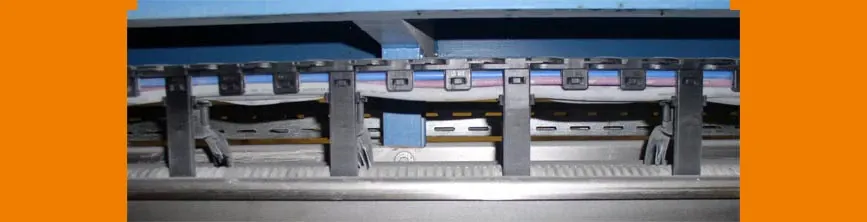 In this application, foodstuffs are weighed for the preparation of convenience food. However, since these are large, heavy quantities, the available energy supply system had to cope with high wear rates. Furthermore, all the media including a suction hose with a diameter of 80 millimetres were supposed to be guided with one energy chain cable carrier. The igus® bow chain, rotated by 90° as a special solution, does a good job here.
