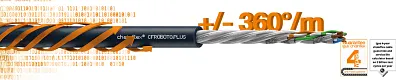 It is impossible to imagine any area of industry without robots, and with them the demand for intelligent actuators is also increasing. Twistable bus cables are becoming an ever greater necessity due to the development associated with Industry 4.0 of transporting an increasing amount of data of a process by means of a bus system. In the range of very large torsion angles, we can now present bus solutions up to +/- 360°/m even for CAN bus and Ethernet up to CAT6A, as 10GBit at 500MHz.