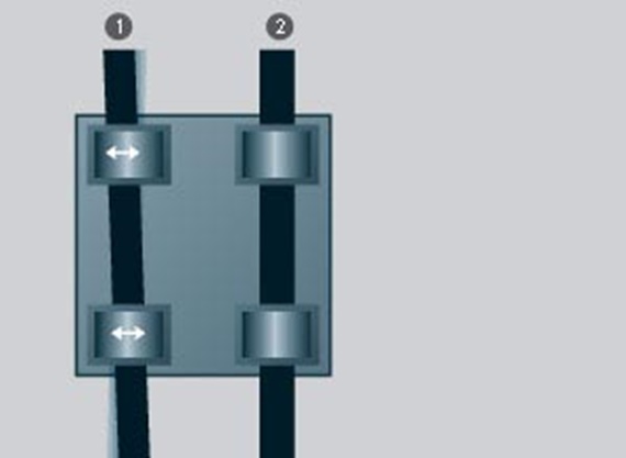 1. Floating bearing, 2. Fixed bearing