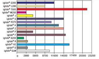 A comparative value of the iglide® plastic bushing material is the permissible static surface pressure (p) at 68°F. The values of each individual iglide® plastic bushing differ when it comes to this.